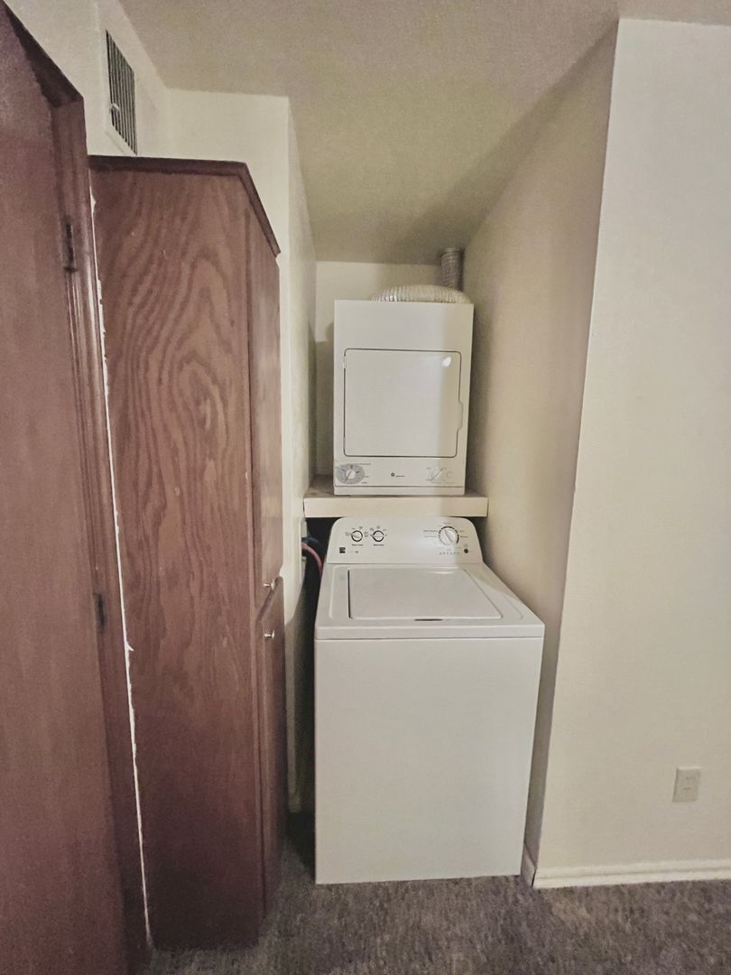 This apartment is very cute and cozy. It comes with wood floors in the living room and new carpet in the bedroom! Amenities include washer, dryer, fridge, range, dishwasher and a fenced in patio in the back. This property is located about 2 miles from OU campus and easy access to all of Normans eateries and fun spots.